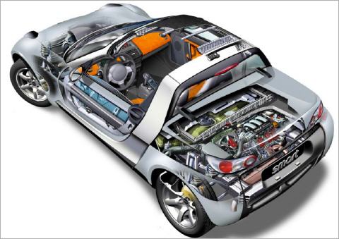 Der smart roadster bietet ein Fahrerlebnis der Extraklasse. Wenn überhaupt, dann nur vergleichbar mit den leichtfüssigen Zweisitzern der 50er und 60er Jahre. Denn der smart roadster ist mit nur 790 kg ein echtes Fliegengewicht unter den Sportwagen. Und je leichter das Fahrzeug, je weniger Masse bewegt werden muss, desto leistungsfähiger und agiler.